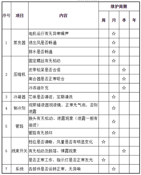 空調(diào)保養(yǎng)周期表如下